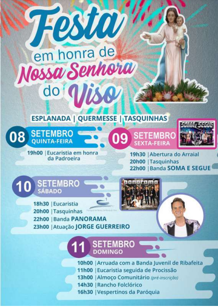 Não perca! De 8 a 11 de Setembro, na Paróquia de Nossa Senhora do Viso, a grande festa da nossa Padroeira, Nossa Senhora do Viso!